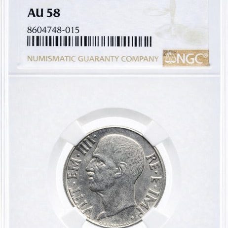 Italiens kejserrige, Vittorio Emanuele III, 10 Centesimi, 1919 Ape, en ikke vurderet og forseglet mønt i højeste stand og sjælden. Klik på den blå "gå til varen" knap, for at købe eller byde på denne vare. Den samlede pris vil blive vist inden du afgiver dit bud.