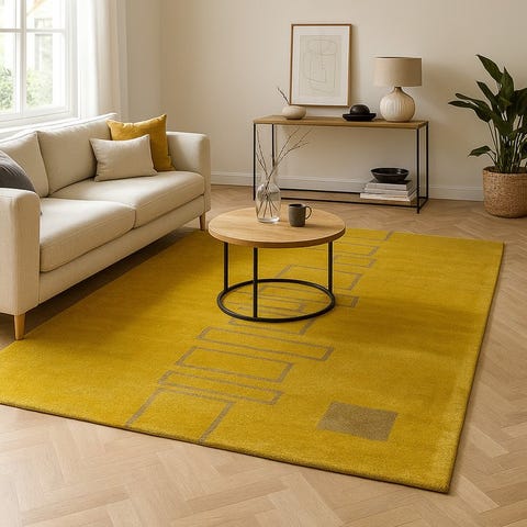Håndvævet moderne Lorifbaft Gabbeh-tæppe (ny/ubrugt) fra Afghanistan med meleret gul farve.