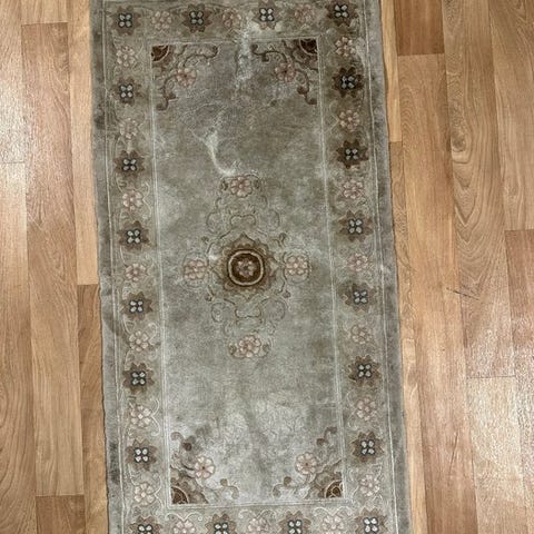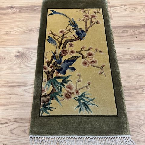 Dette semi-antikke håndlavede kinesiske silke tæppe med omkring ~750.000 knuder/m² og et metalbaseret design, der giver det en 3D-effekt. Dette silketæppe blev vist som et dekorativt tæppe i mange år og er i fremragende stand. Denne type ældre ægte håndvævede silke- og metal-tæpper er yderst sjældne i denne stand, givet alderen, den fremragende tilstand og håndværket.