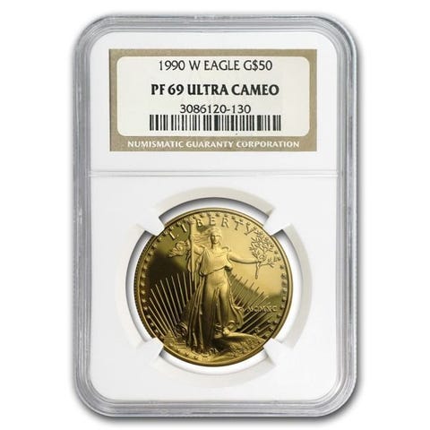 Præget i 1 troy ounce af 22-karat (.9167) fint guld, er dette tredje årgang af denne elskede bullion-serie, hvilket gør den til en virkelig svært få mønt. Disse mønter er certificeret som PR68 Deep Cameo af PCGS.