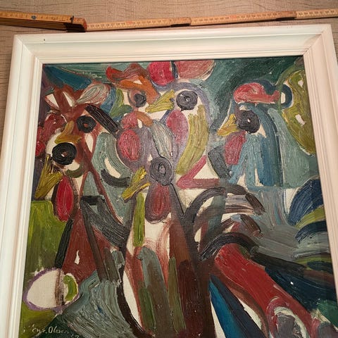 Oliemaleri af Eyvind Olesen. Signeret og dateret. I flot stand indrammet med mørk træramme.