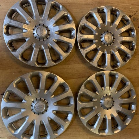 Ford fælgkapsler sæt bestående af 4 stk. i sølvfarve, designet til 15 tommer hjul. Fremstillet i plastmateriale, passende til alle 15 tommer hjul. Fælgkapslerne har et mønster med flere eger og et centralt Ford-logo. De trænger til en rengøring følger med i prisen:-) KUN SERIØST BUD BESVARES :-)