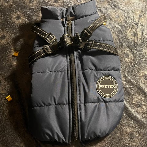 Regn- eller overtræksdragt til medium hund. Meget anvendelig hele året men specielt i regn- eller snevejr. Tidligere anvendt til labrador. Brugt men virkelig god stand, hvor alt fungerer som nyt.