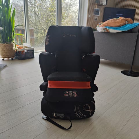 Meget fin stand eneste fejl er at den ene plastik arm er knækket på selelåsen,