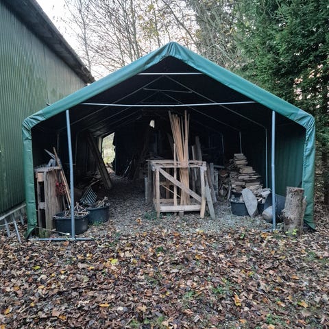 Alle 14 rafter er i god stand, enkelte er nyindkøbte hos Eagleroad, hvor også teltdugen er fra.