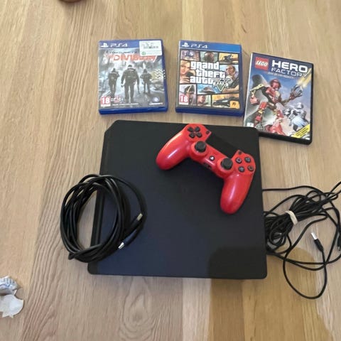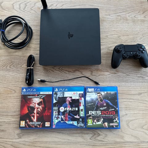 Sony PlayStation 4 Slim konsol med 2 controllere og 5 spil