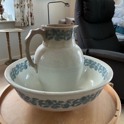 Savantestel bestående af kande og fad. Stemplet “Jylland”.