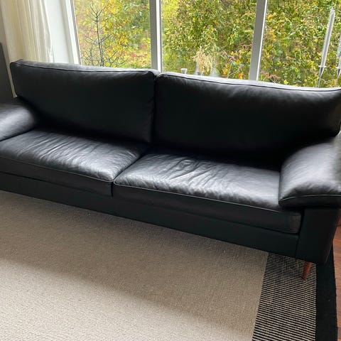 Super flot stue i sort Rio okse læder 3 Pers, 2 Pers og høj stol med skammel har meget lidt patina fra ikke ryger hjem og dyr, har fået rens og læder fedt 1-2 gange om året, har haft dem fra ny, ny pris i dag er ca. 97000,-kr, skal ses, er åben for bud, men ikke skam bud