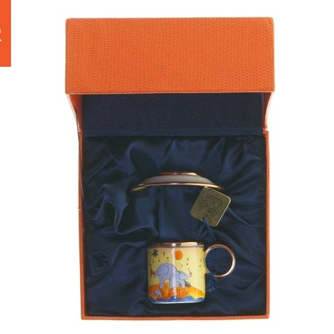 Denne miniature kaffekop og tilhørende fat er fra Charlotte di Vita collection, London. Koppen har et farverigt og kunstnerisk design med kattemotiver, og er en del af en nummereret udgave. Den leveres i en elegant orange opbevaringsæske med blå indvendig foring. Perfekt som samlerobjekt eller dekorativt element. Størrelse på koppen er 6 cm og på fatet er 4 cm.