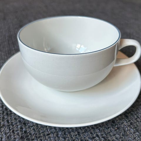 Blå Kant, 3 par Tekopper med underkop nr. 3074, indhold 27 cl, Royal Copenhagen (underkop ø: 15cm kop Ø 10cm)