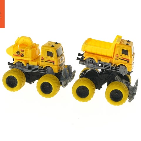 Dette er en legetøjslastbil med en integreret gravemaskine arm. Den er primært i farven gul med sorte detaljer og har otte hjul. Lastbilen har en realistisk konstruktion, der gør den populær blandt børn, der nyder at lege med bygge- og entreprenørmaskiner. Lastbilen kan bruges indendørs såvel som udendørs som en del af fantasifulde lege. Den måler 35x33 cm. Tags: lastbil, gravemaskine, legetøj, bygge