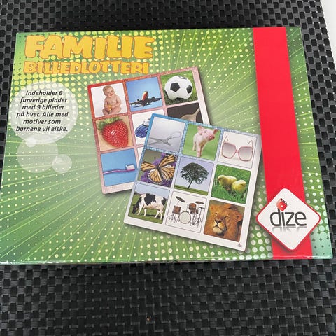 Dette er et familiebilledlotteri fra mærket Dize. Spillet leveres i en kasse med størrelsen 28x22 cm. Det indeholder 6 farverige plader med motiver som babyer, dyr, køretøjer, og naturbilleder, alle med billeder som børnene vil elske. Der er 54 billedkort inkluderet, og kortene er en del af spillet, der kræver, at deltagerne matcher billeder fra kortene med billederne på pladerne.