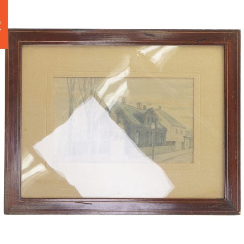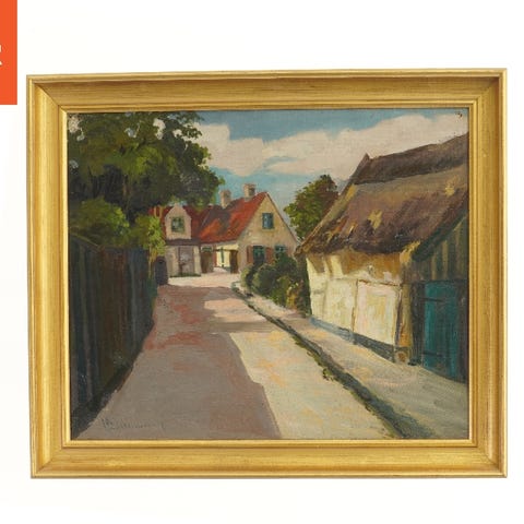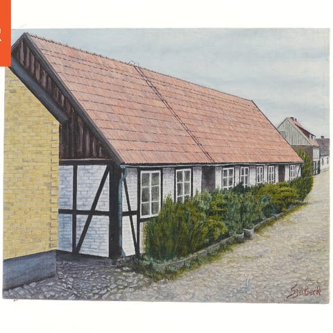 Maleri af hus fra Sjöbeck (str. 56x46,5 cm)