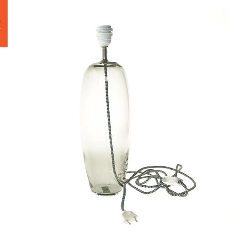 Dette er en bordlampe fra serien 'Grace'. Lampen har en enkel og moderne design med en klar glasskrop og en hvid fatning. Ledningen er et sort og hvidt mønster, som tilføjer et stilfuldt touch. Lampen kommer i sin originale emballage og er designet med omhu. Den måler 47,5 cm i højden og er velegnet til brug som indendørs belysning, eksempelvis på et skrivebord eller natbord.