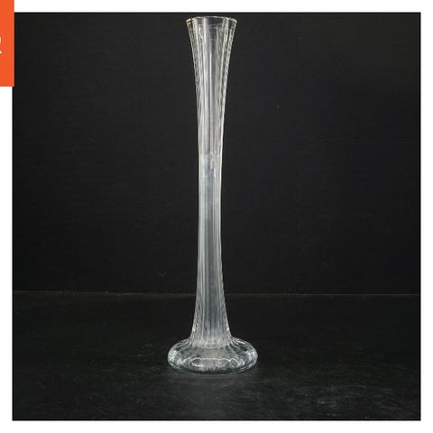 Dette er en dekorativ glasvase fyldt med farvet sand, der skaber et ørkenmotiv med kameler og bjerge. Vasen er 18 cm høj og har en unik form med en indsnævret top og rillet sektion, der giver et stilfuldt udtryk. Velegnet til at tilføje et kunstnerisk touch til ethvert rum.
