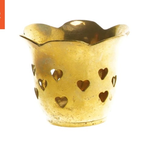 En lysestage lavet af guldmetal med en blank finish. Lysestagen har en rund base og en enkelt holder til et lysestag, der er 7x8 cm i størrelse. Designet er enkelt og elegant, ideelt til hjemmedekoration. Stagen er designet af Asnussen og er fremstillet i Danmark, hvilket fremgår af teksten indgraveret på undersiden.