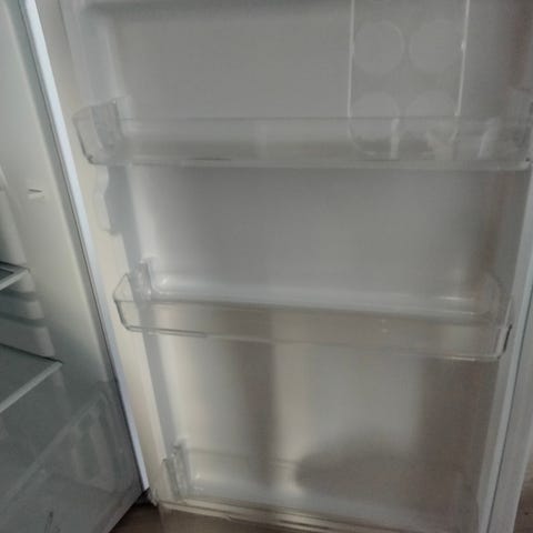 Køleskab har 4 flytbare hylder, en grøntsagsskuffe, Døren har 3 hylder, højden er 104 cm.