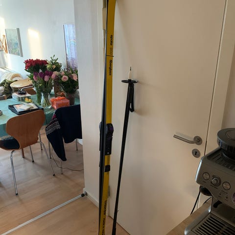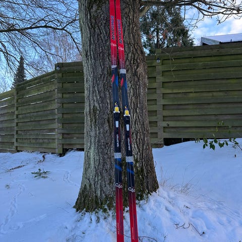 Skiene er i fin stand, så der er mange ture tilbage i dem. Passer til en person på cirka 180 cm.