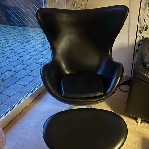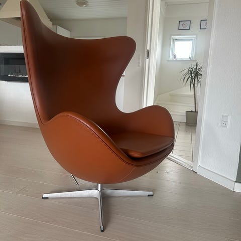 Fritz Hansen Arne Jacobsen Ægget Læderlænestol