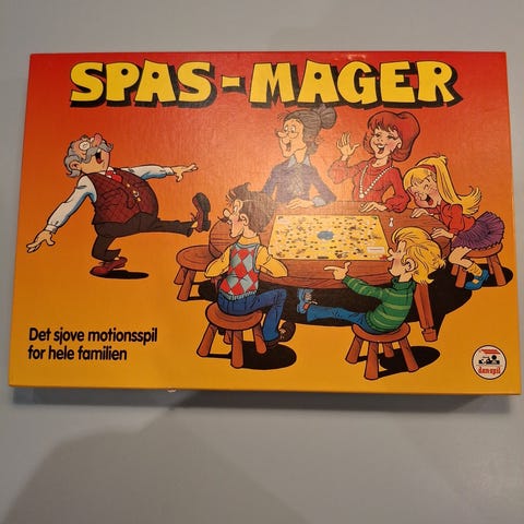 Spas-Mager brætspil er et motionsspil designet til hele familien. Spillet indeholder spillebrikker, kort og en spilleplade med farverige felter. Det er velegnet til socialt samvær og aktivitet i hjemmet.