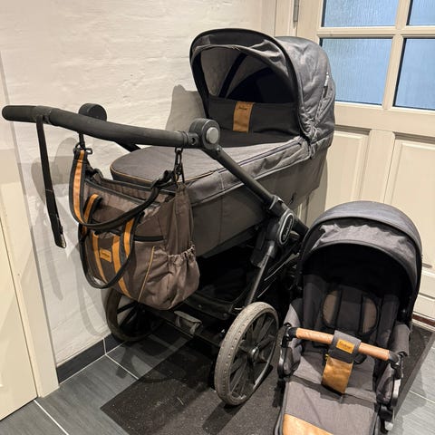 Barnevognsdelen kan let skiftes ud med en klapvogn, der både kan forud- og bagudvendes. Med en autostoladapter kan også autostol monteres på stellet.