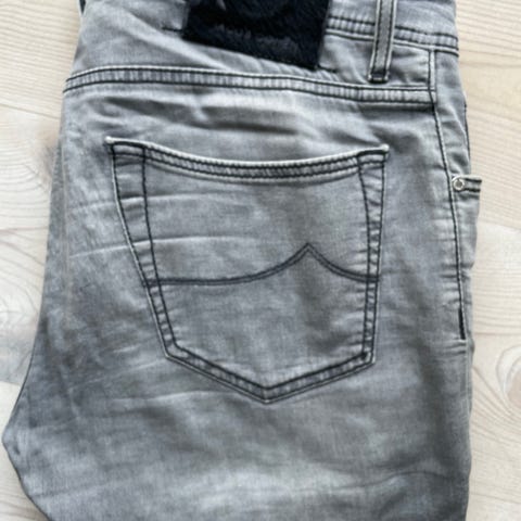 Det er en stretch model og den har over tid udviddet sig i livvidden. Da jeg altid bruger str 33 i Jacob Cohen kan jeg derfor ikke passe dem længere. Det er eneste grund til at jeg sælger. Vil anbefale dem, hvis du normalt bruger str 34