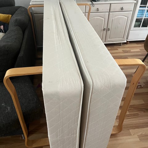 2 velholdte boksmadrasser. ca. 10 år. Faste.