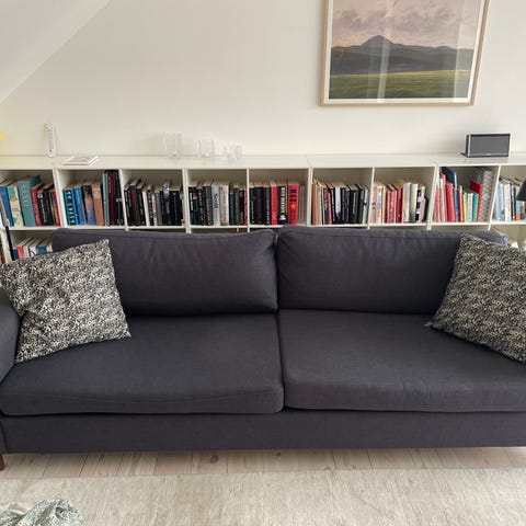 Enkelte skjolder og 3 små “riv” i stoffet. Ellers i pæn stand.