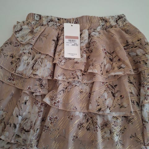 Flot nederdel i størrelse M med elastik talje. lavet af polyester materiale. Nederdelen har et multifarvet mønster og knapper ned foran. er designet til kvinder.