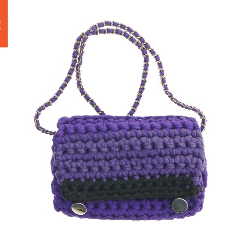 En lille smal håndtaske med et enkelt rum, der lukkes med en flap og en metal lukning foran. Tasken har en fast rem og er lavet af et mørkt stofmateriale med blanke sorte sidekanter. Den måler 13x24x7 cm, hvilket gør den velegnet til at bære små genstande. Et metaldetalje med et logo eller initialer er placeret på fronten af tasken. brugt meget lidt
