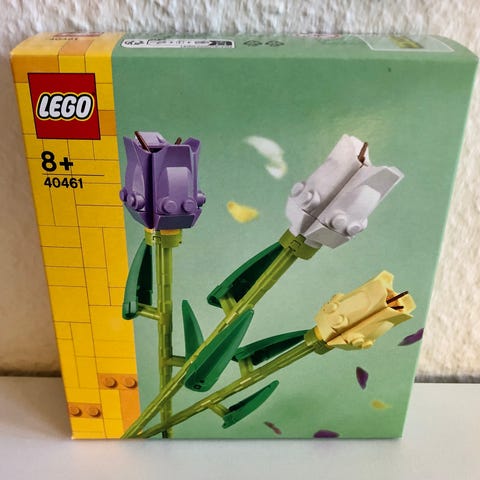 Sælger disse LEGO blomster / tulipaner 40461. Uåbnet æske. Fin lille blomst til udsmykning af hjemmet. Den er uåbnet og har været opbevaret mørkt og tørt.