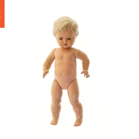 Dukken er en traditionel legetøjsdukke med lang blond hår og klædt i en hvid kjole med lyserøde detaljer. Den har også en løs hvid underkjole ved siden af. Dukken har en længde på 47 cm og er beregnet til børns leg.