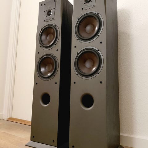 Et sæt DALI Concept 6 gulvhøjttalere– klassisk hi‑fi‑model med god og detaljeret lyd.