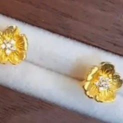 Et par ørestikkers med blomsterformede udsmykninger, der måler 15 mm i diameter. De er i en lysegrøn farve og lavet af plast, monteret på metalknopper med lås. Disse er ideelle til daglig brug eller som en stilfuld tilføjelse til ethvert outfit.