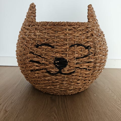 Bloomingville opbevaringskurv i flet med motiv af en hund. Kurven har ører og ansigtstræk broderet på ydersiden, hvilket giver den et dekorativt udseende. Velegnet til opbevaring af legetøj eller andre småting.