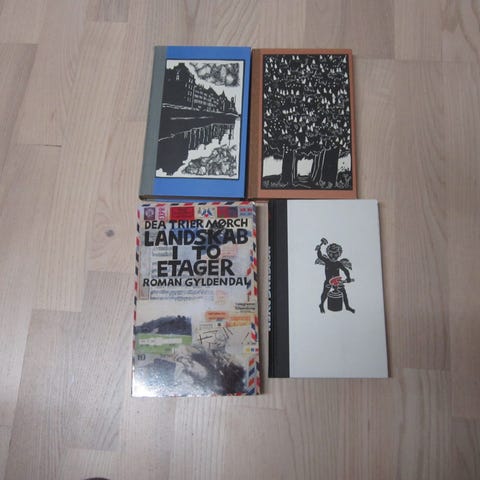 Gyldendals Bogklub udgivelse med bøger af Dea Trier Mørch, herunder titler som 'Den Indre By' og 'Kastanie Alléen'. Bøgerne har illustrerede omslag og er trykt i forskellige farver, herunder blå og grøn. Indholdet omfatter både tekst og illustrationer og er velegnet til læsning og samling. Tag alle 3 for 50kr. Pr stk 40