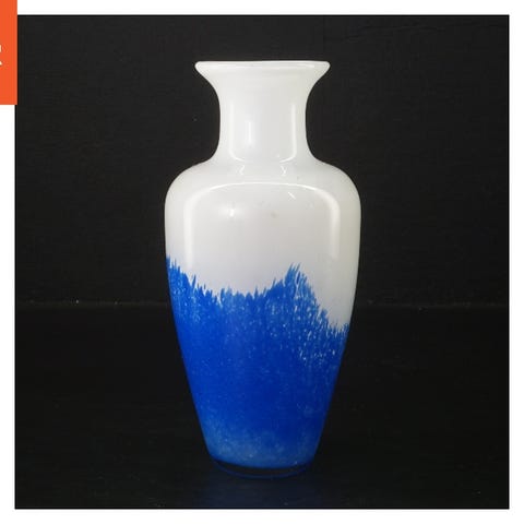 Denne vase er lavet af glas og har en cylindrisk form med en højde på 25,5 cm og en diameter på 12 cm. Den er transparent med en blå nuance og har indgraveret detaljer. Vasen har en flad bund, hvilket gør den ideel til at stå stabilt på flade overflader.