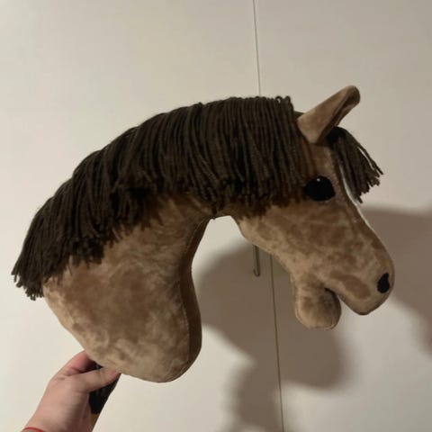 Håndlavet kæphest i sort og hvid, brugt men man kan ikke se nogle spor af brug