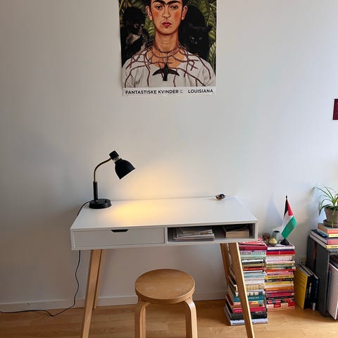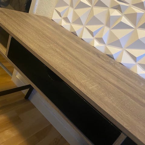 Super fint skrivebord fra jysk. Står som nyt. God plads til pynt/ opbevaring og evt stationær computer.