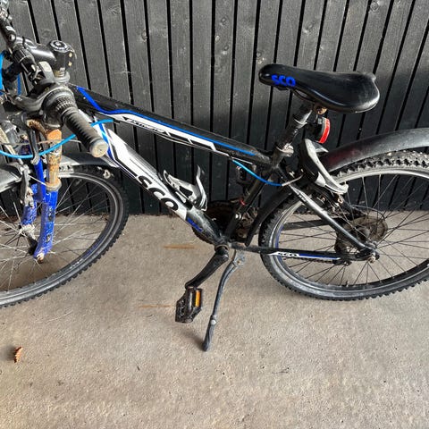 Vores barnebarn er blevet for stor til denne flotte 24" Mustang MTB. Den står næsten som ny uden skrammer og rust. Der er skivebremse på forhjul og fælgbremse på baghjul. Der er teleskop affjedring i for og justerbart affjedring i bag. Der er 18 gear, lys, refleks og der følger en kabellås med, dækkene ser ud som nye.