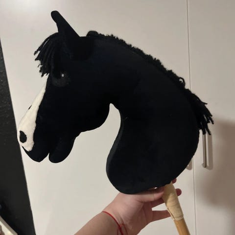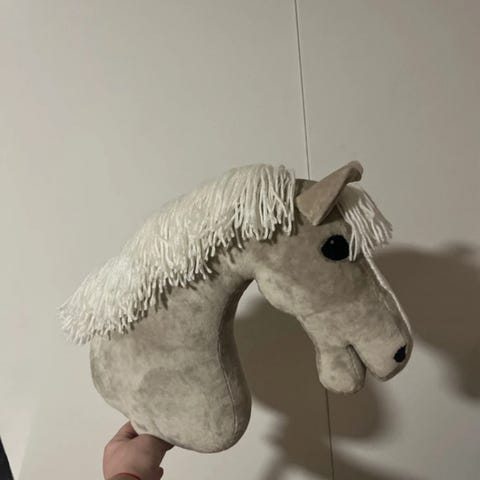 Håndlavet kæphest i brun og hvid, næsten ikke brugt ingen spor at brug