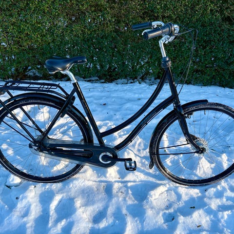 Total tip top nyistandsat, smurt, strammet og justeret hollandsk kvalitetscykel i super flot matsort stand. Cyklen står nærmest fuldstændig som ny, med minimale brugsspor. En cykel der er blevet passet rigtig godt på. Alt virker 100 %, og cyklen kører og fungerer som fra fabrikken, uden mislyde, defekter, slør eller skavanker nogen steder.