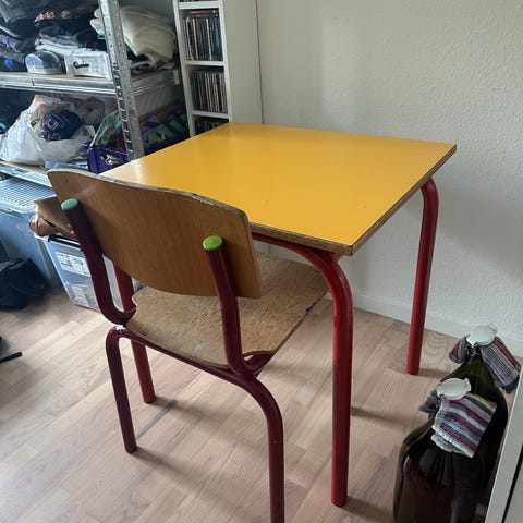 søgeord: institution daginstitution bord spisebord køkkenbord legeværelse træ linoleum institionsmøbler institutionmøbel skrivebord fiks og færdig fiks/færdig sikker handel via mobilepay vuggestue denmark møbel vintage