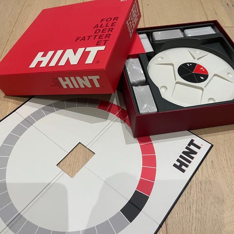 Hint er et brætspil, hvor holdkammerater skal gætte forskellige ting baseret på hints. Spillet inkluderer kort og en spilleplade, og giver muligheder for mime, tegn og tale om forskellige emner. Det er egnet til sociale begivenheder og kan spilles af 4 spillere. Størrelsen af kassen er 27x27 cm. Tags: spil, brætspil, sjov, selskabsspil