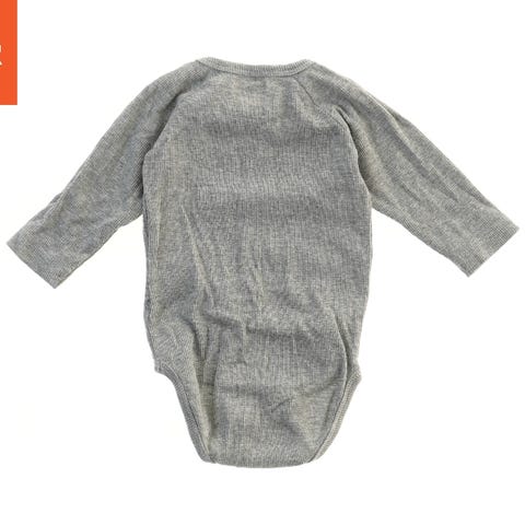 Hvid bodystocking med lange ærmer og en krave. Den har en knaplukning foran og trykknapper ved benene for nem påklædning.
