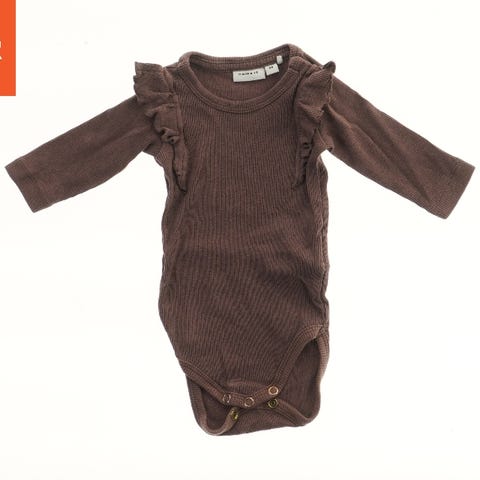 Langærmet bodystocking i brun med knaplukning foran og knapper ved bunden til nem påklædning.