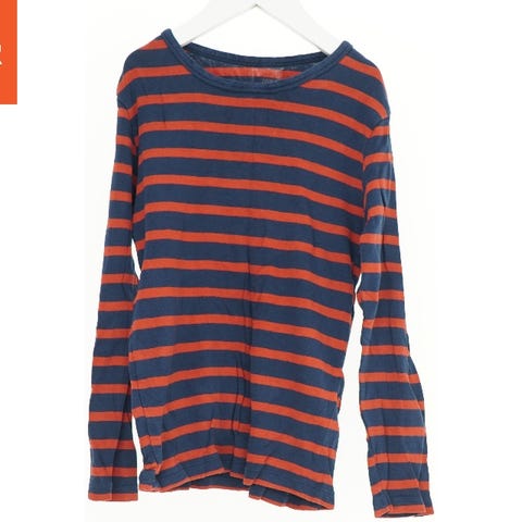 Langærmet T-shirt med striber i forskellige nuancer af blå. På forsiden er der et motiv af en planet. T-shirten har ribkanter ved halsen og er lavet af blødt materiale.