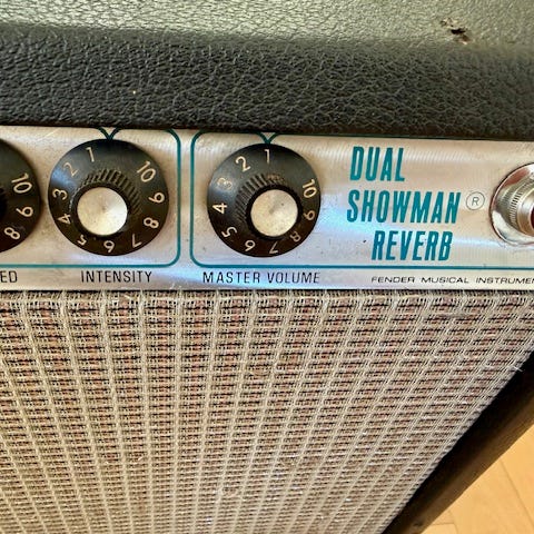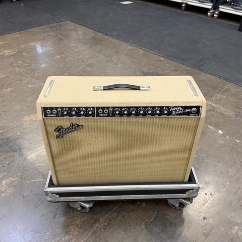 Fin gammel Fender Twin Reverb fra en gang i 70´erne. Med flightcase og fodpedal. Den spiller som en drøm, er serviceret undervejs, har fået skiftet rør og den en højttaler på et tidspunkt. Frontstof er nyt, men den er tung ad hel… til.