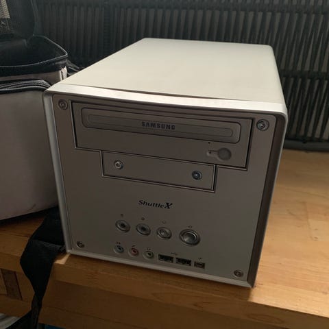 Gammel Dell PC, uden harddisk. Virkede dengang, da den havde fået nyt bundkort, men aldrig brugt.. Det optiske drev er uoriginalt, da et originalt dengang var DYRT..