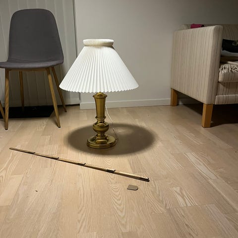 Bordlampe i porcelæn med messingkanter, Le Klint foldeskærm